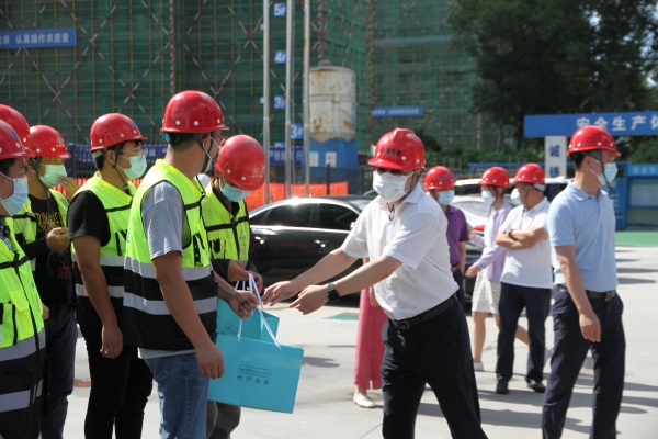黃文斌、蘇強等領(lǐng)導(dǎo)親自將防疫用品、清涼飲料、生活用品發(fā)放到工人手中,對他們高溫下不畏艱苦堅守崗位的精神表示肯定和贊揚。黃文斌強調(diào),要時時刻刻繃緊疫情防控和施工安全這兩根弦,并提出兩點要求:一、安全生產(chǎn)是重中之重,面對高溫天氣,要注意自我調(diào)節(jié),立足本職崗位,規(guī)范施工操作,踏實做好工作,高質(zhì)量推進(jìn)項目建設(shè)。二、近期國內(nèi)疫情形勢嚴(yán)峻,疫情防范不容絲毫松懈,要對照最高管控標(biāo)準(zhǔn),堅決落實建筑工地疫情管控,保障施工人員的身體健康和生命安全。